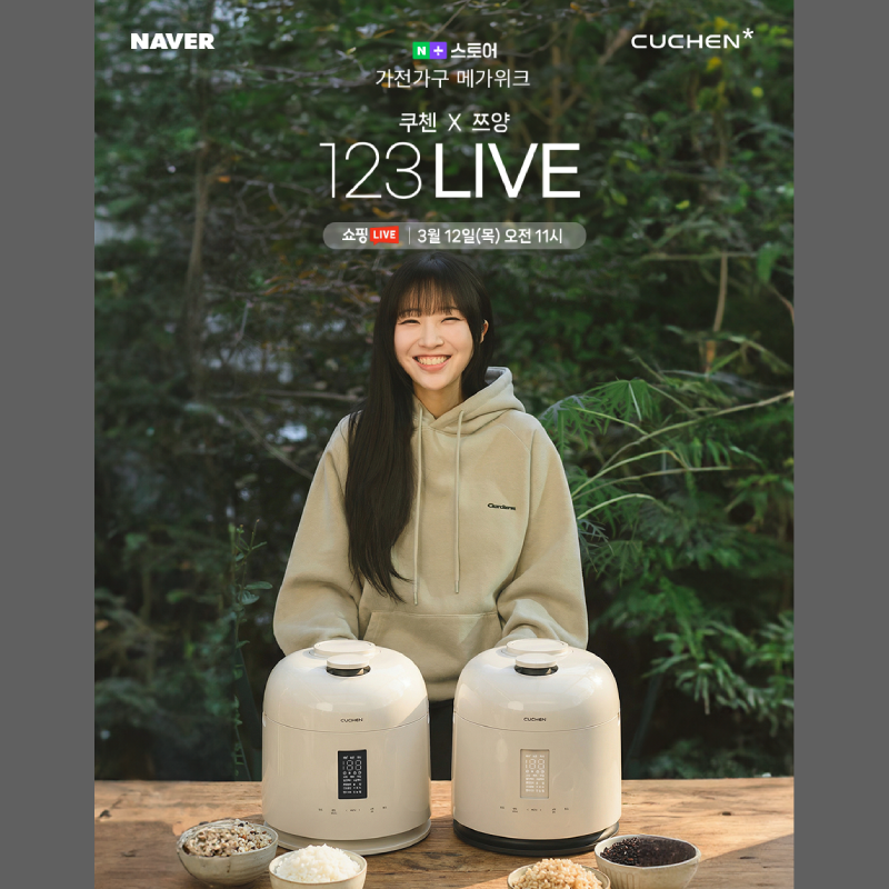 쿠첸, 네이버 쇼핑 라이브서 먹방 유튜버 쯔양과 함께 123 라이브 진행